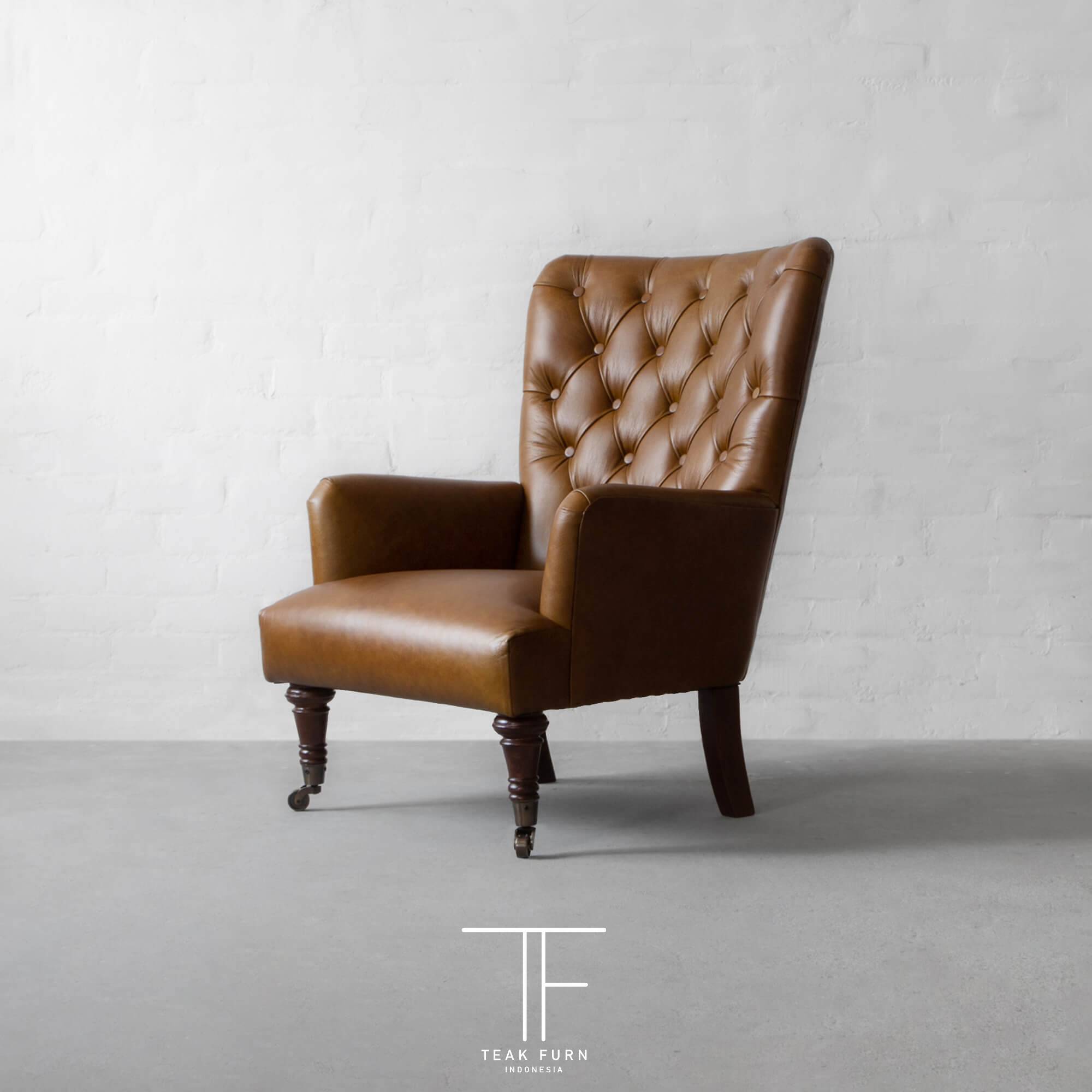 Kursi  Vern Leather Armchair dengan model minimalis ini memang sangat tepat untuk mengisi ruangan anda. Kami menghadirkannya dengan material rangka Kayu Jati solid pilihan.