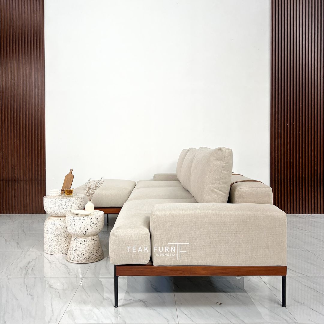 Sofa dengan model minimalis ini memang sangat tepat untuk mengisi ruangan anda. Kami menghadirkannya dengan material rangka kayu jati solid pilihan.