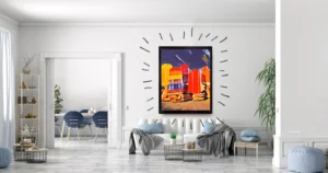 • Industrial: Use artworks with urban or abstract themes.